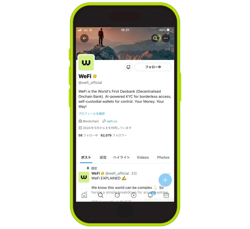 XにもWeFiの公式アカウントがあり、日々情報発信がされています。