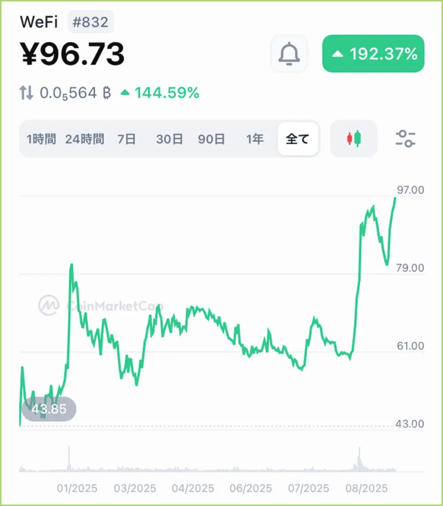 現在のWFIトークンの価格は96.73円。(2025年9月現在)