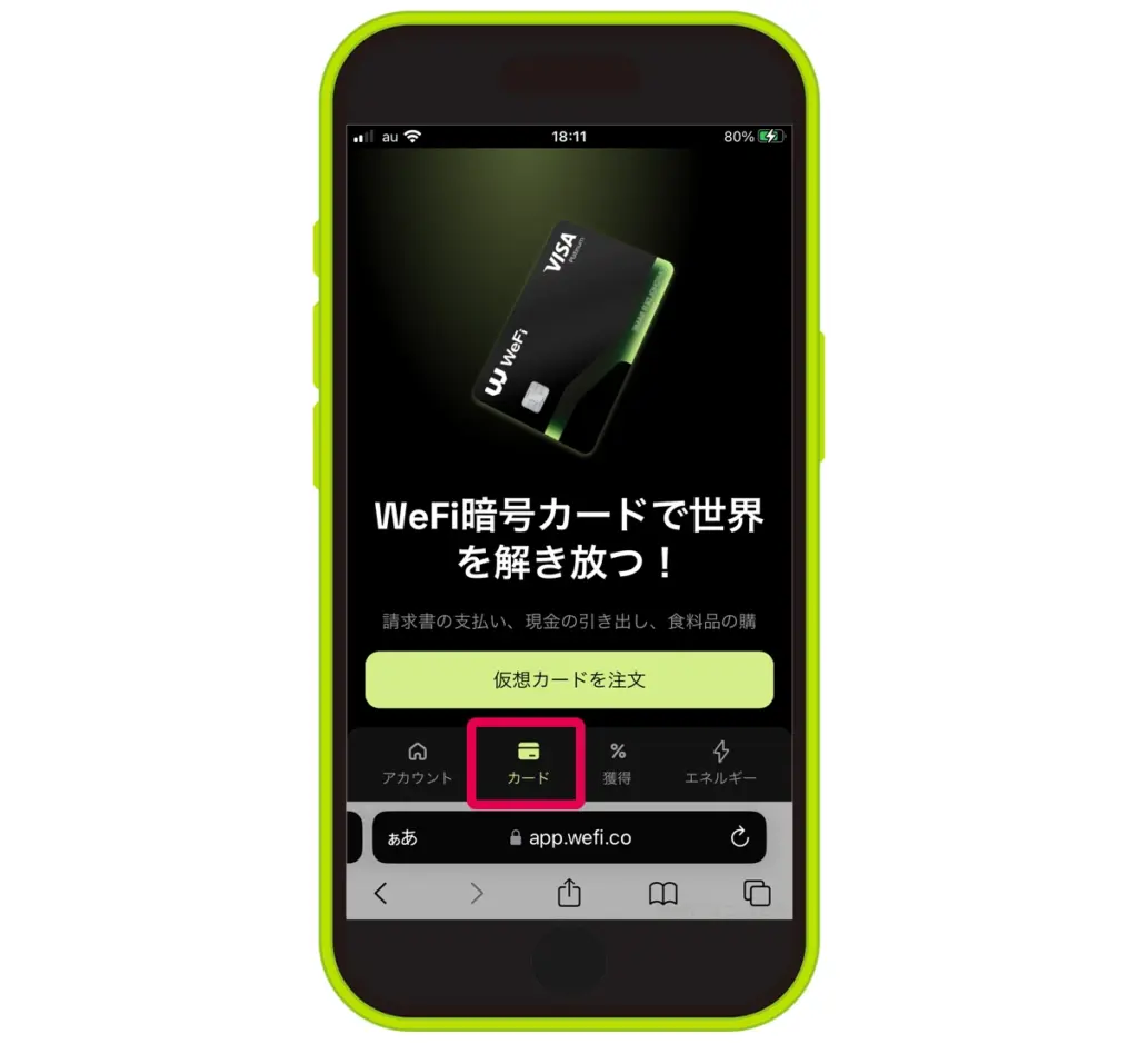 WeFiは暗号資産対応型VISAカードを利用することができます。