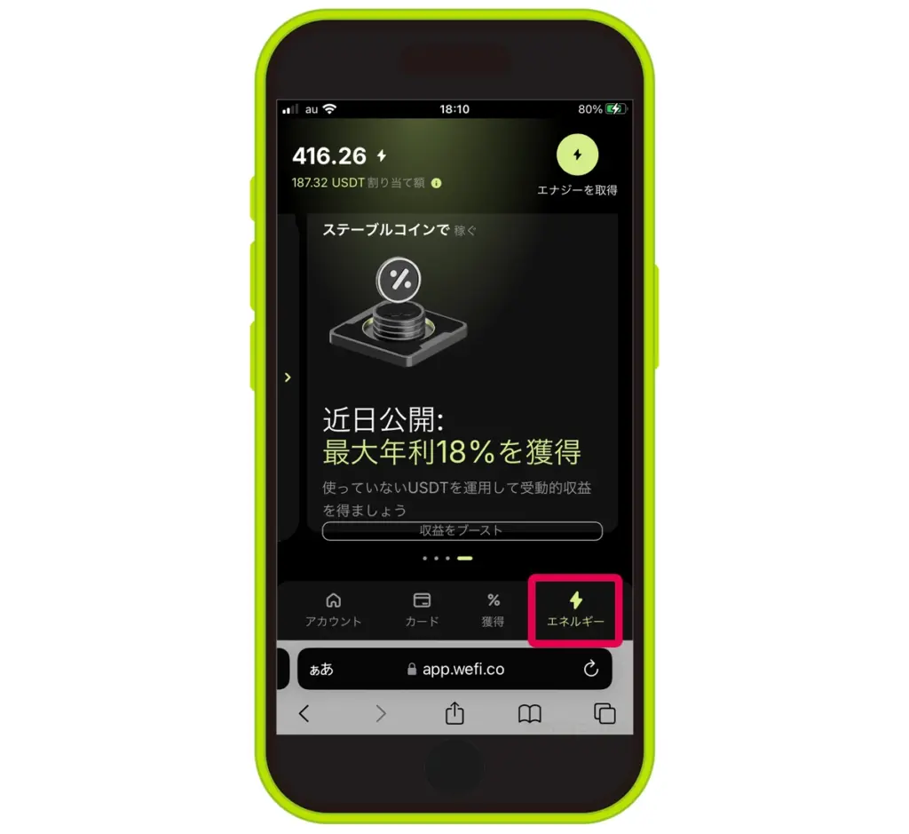 獲得したエネルギーを使用することで、WeFiカードの利用手数料を抑えたり、ステーブルコイン運用の利率を引き上げたりすることができます。